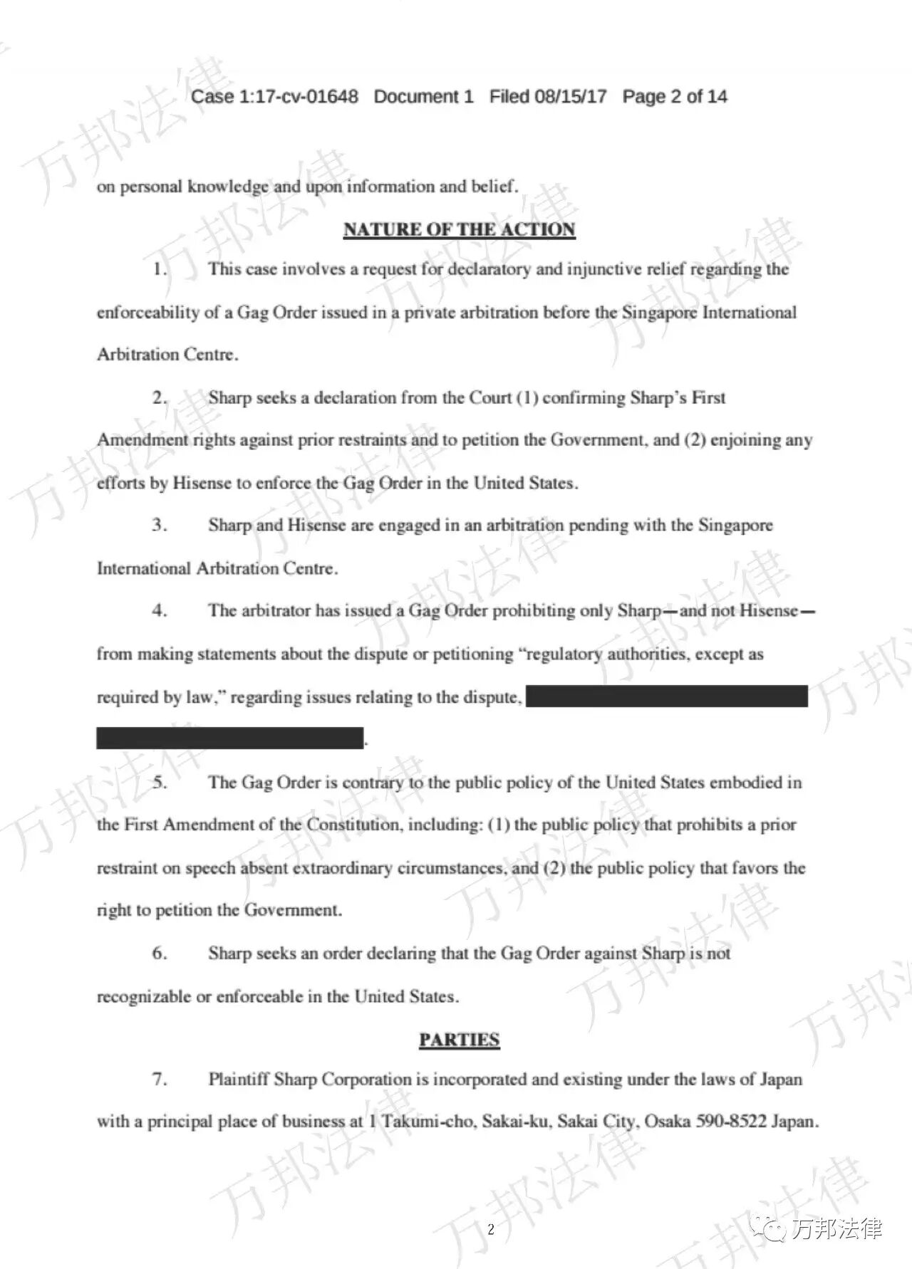 我们昨天报道了《独家:海信成功对夏普开出禁言令,夏普美国绝地反击!》。我们第一时间拿到了起诉状全文。出于研究和学习目的,分享如下。本案报道并无任何特定立场或商业目的,也不代表任何机构,材料来源合法。特此声明。