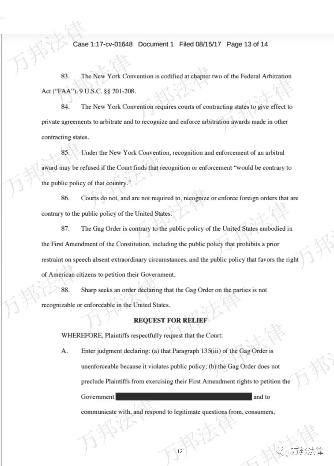4. 夏普主张禁言令侵犯其言论自由权和向政府请愿权,并把向主管机关提交的材料作为证据二。